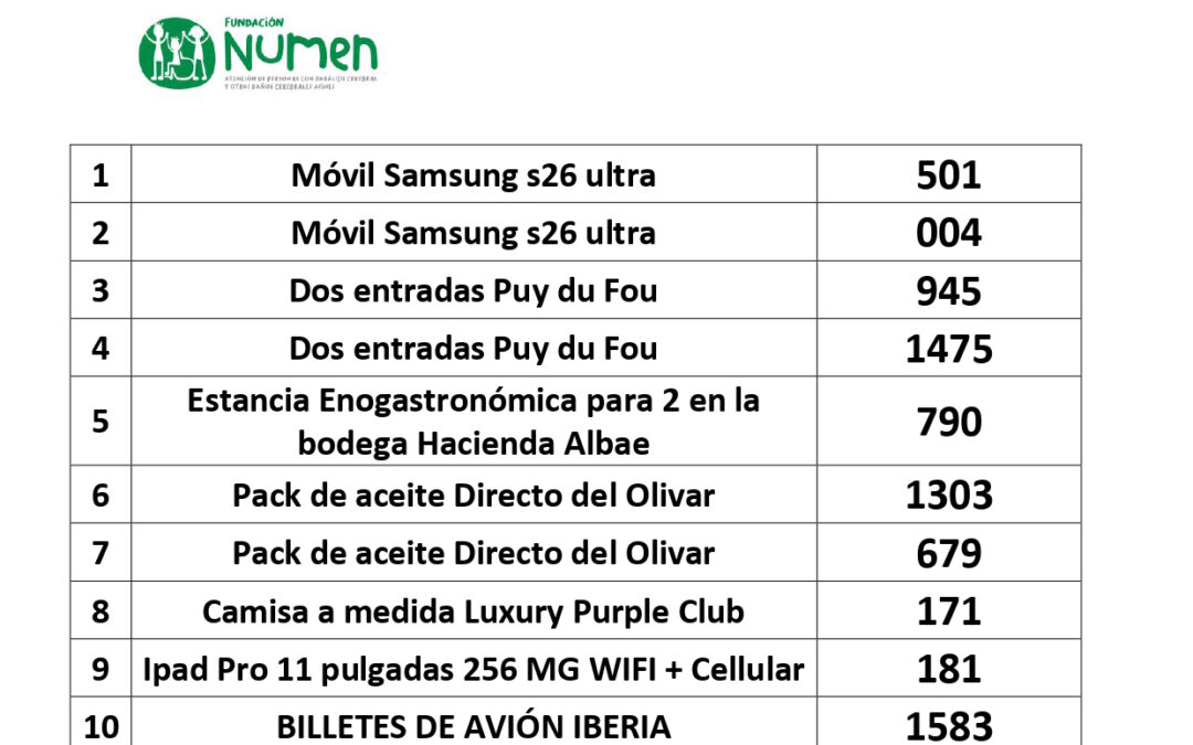 ¡¡Ya podéis consultar las papeletas premiadas de la rifa solidaria que celebramos durante el X Torneo Benéfico de Pádel Fundación NUMEN!!
